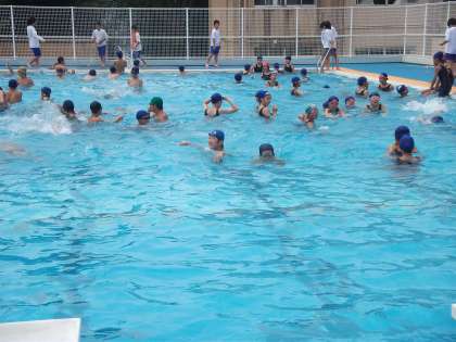 1年生の3・4・5組は最後のプール授業でした。フリータイムには、みんな楽しそうでした。今日は猛暑日に戻りますから、プールも気持ちがよいでしょう。