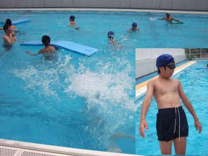 8組も3時間目はプール。今日で最後の授業になります。前半は水泳の練習をして、後半は名残を惜しむように楽しく過ごしました。