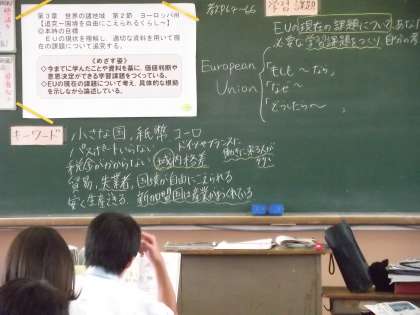 EUについて既に学習したこと、お互いに関税を掛けない、共通の通貨、パスポート無しで移動可能というようなことを発表し、更に学習を深めていきました。