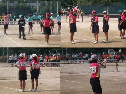 第1ペア、第2ペア、第3ペアともほとんどゲームを落とさずに危なげなく勝ち進みました。2回戦はシード校の桂中学、気合いを入れ直して勝負です。