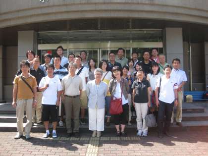 午後は地元ボランティアの方の案内で、フィールドワークです。気温35度を超える炎天下を歩くのはそれだけで大変でした。噴き出す汗をぬぐいながら小高い丘の上の神社まで上り、水平社を作った当時の青年達の話を聞きました。