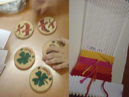 敬老の集いに向け、老人クラブの方々への手紙やコルクコースターが完成していってます。終わった人は自分の「織物」の学習・作業をやります。