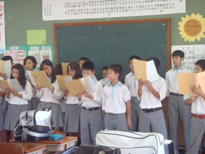 1年生は各クラスで合唱練習。5号館に行くとちょうど5組が練習中でした。パート別の後クラスみんなで合わせて練習をしています。