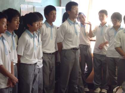 今日は2年生が音楽室の割り当てのようで、異動する前に教室でしっかり声を出す練習です。指揮者が中心になって頑張ってます。