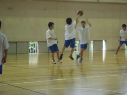 すでに野球部、男女バスケットボール部の新人戦が始まってます。この週末には女子テニス部の団体戦も始まります。放課後の体育館では男子バスケットボール部が熱のこもった練習をしてました。