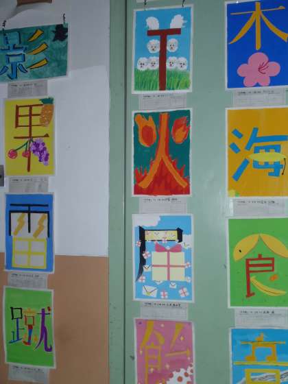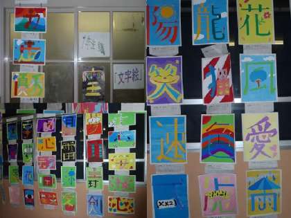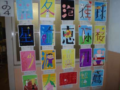 1年生は文字絵の作品です。それぞれが好きな文字を選んでデザインします。