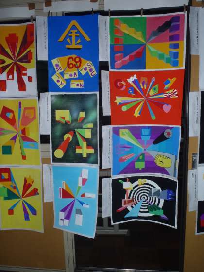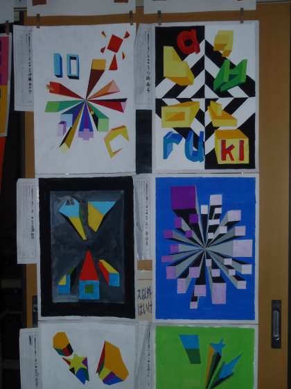 3年生は「一点透視図を生かした構成」です。さすがに3年生という作品ですね。