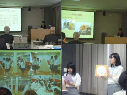 9月14日(土)に左京区の造形大学瓜生キャンパスで「京都芸術教育コンソーシアム(Art-e Kyoto)」が開催され、本校の美術科と美術部が参加しました。まず成安造形大学との連携の取り組みについて、美術科の岡先生から発表があり、3年生の生徒たちからは、壁画、アニメ、紙コップ、文化祭に向けた制作での連携した活動の感想などが述べられました。