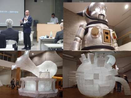 当日は造形大学の学園祭の取り組みの一つで、大がかりな「ねぶた」のお祭りがあり、その作品も見せていただきました。最後に生田教育長、藤田副市長や各学長の方と記念撮影をしていただきました。