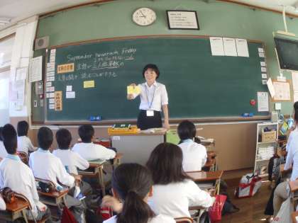 英語科谷口先生の最後の授業です。「三人称」の練習が今日の目標でした。