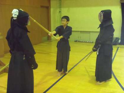 練習場所は卓球部と半分ずつでと狭いけど、激しく竹刀がぶつかる音が響き、コーチの指導の元で濃密な練習が行われていました。