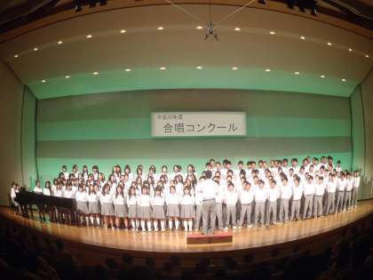 コンクールの最後は3年生の部、まずは学年合唱の「大地讃頌」で迫力ある歌声を響かせてくれました。その後3年4組からスタートです。