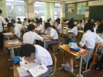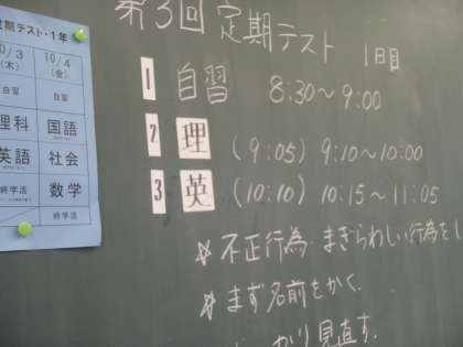 今日から全校第3回テストですが、朝の小雨で気温も下がり、過ごしやすくテスト日和になりました。朝の学習の時間が終わり、テストが始まると、どのクラスも集中して取り組んでいました。