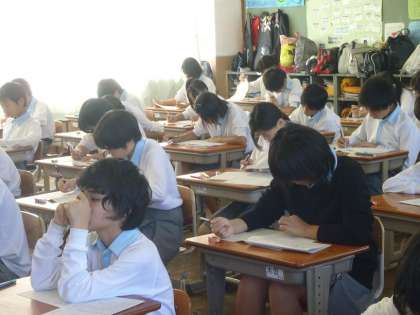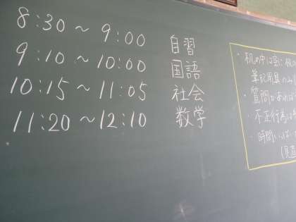 二日目1年生は国語から始まります。1時間目は各クラスともテスト勉強の時間です。