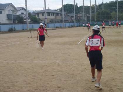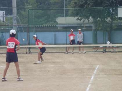 ソフトテニスのブロック予選が、5日(土)、安祥寺中学、音羽中学を会場にして行われました。山科中学からは、2年生8ペア、1年生17ペアが出場しました。