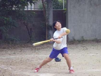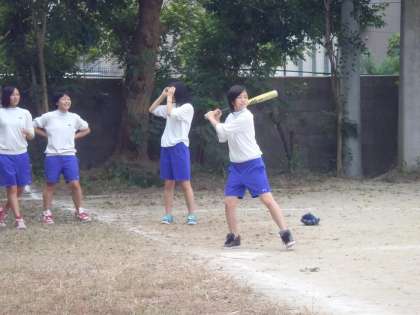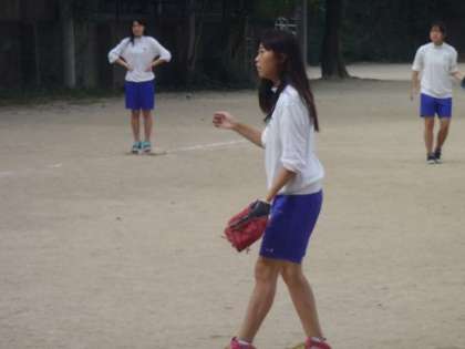 女子の体育はソフトボールです。男子のように小さい頃の「草野球」経験が少ないので、ちょっとしたファーストゴロやピッチャーゴロがランニングホームランになったりしてました。それでも普段やらないスポーツなので楽しそうにプレーしています。