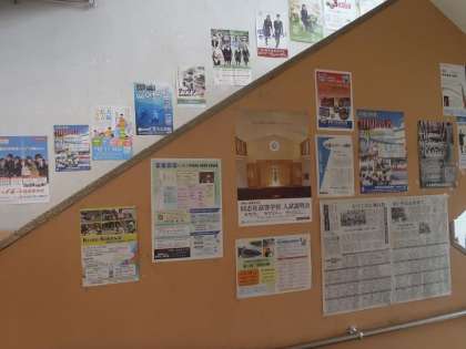 3年生校舎の階段、廊下にたくさんの高校のポスターや案内が貼られています。来週16日には進路保護者説明会があり、いよいよ進路決定が近づいてます。大事なことは地に足を付けて学習に取り組むこと。一日の始まりである朝読書の時間を大切に。