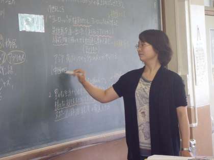 各グループからの意見を永田先生が黒板に書き写し、生徒も自分のノートに他の人の意見を書き取っていきます。最後に先生が気がついたことや、良かったポイントなどをまとめます。