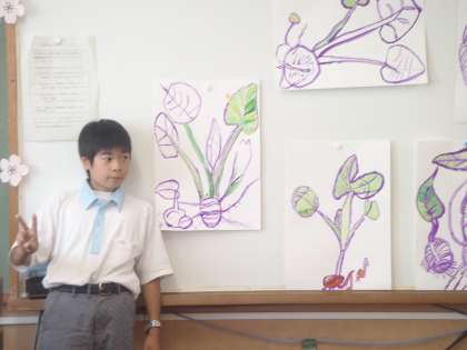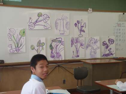 授業は数学の時間でしたが、ちょうどホワイトボードに作品が貼ってあったので、生徒にもちょっと協力して貰いました。