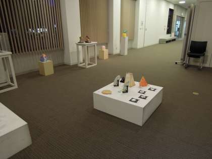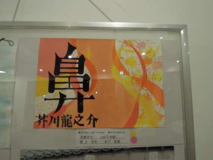 この展覧会は,京都市立の中学校生徒のみなさんの作品を集め開催されます。今回は,今年度開催の京都市幼児・児童・生徒作品展/姉妹都市交歓作品展に出品されている作品から選抜し展示されました。山科中学校の生徒作品も平面,立体共に数点選ばれて展示されています。