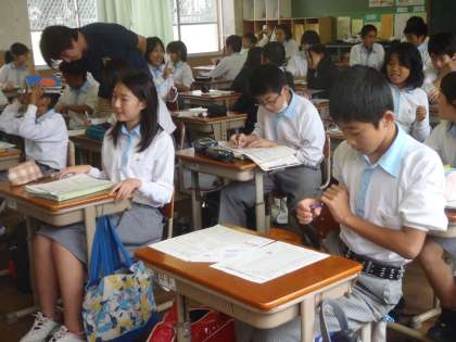 本日は6限目に進路保護者説明会が予定されており、5時間目が参観でした。1年生の英語では「電話でのやりとり」を生徒たちが英語で行いました。