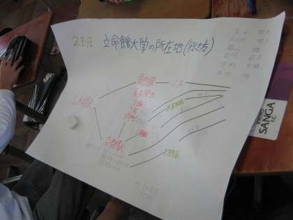 3年では、進路学習の中で、大学訪問を行います。それに先立って、それぞれのクラスが訪問する大学のことを調べ、模造紙にまとめています。