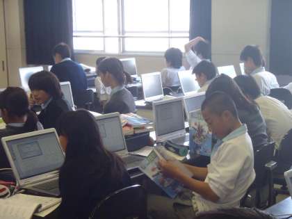 生徒は教科書の図を見ながら、パソコンで描画のソフトを立ち上げて、忠実に線を引いていきます。任意の軸を引き、メモリを合わせて・・・・なかなか難しそうでパソコンとにらめっこです。