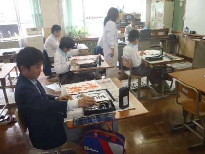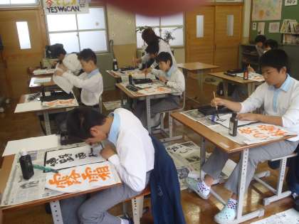 今日の1時間目,書写の授業でした。「わたり鳥」「秋風」「情熱」「霧霜」などの字に挑戦しています。