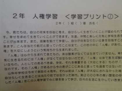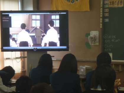 今年も人権が始まります。全校では28日に講話を行いスタートしますが、2年生では校外学習の関係もあり、今日が3回目の学習でした。ビデオ「残された名刺」をみて考えます。