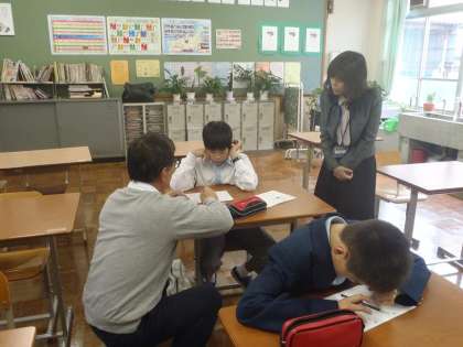 昨日,総合育成支援下の森田主事が学校訪問にお見えになり,8組の市との様子をご覧になりました。A教室では1・2年生の国語のテストでしたが,「みんなしっかり頑張っているね」と励ましていただきました。B教室では同じ国語でも3年生が長文の読み取りを行ってます。難しい内容を頑張っていると感心されていました。C教室でも2・3年生が漢字の書き取りなどを頑張ってます。