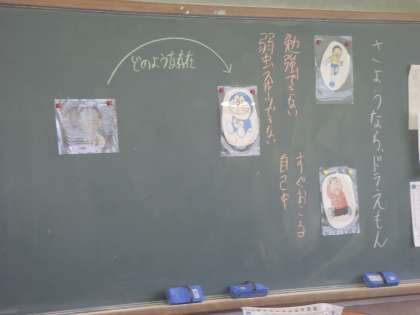 ストーリーを追いながら,友情や自立について考えていきます。最後にアニメをみんな真剣に見ていました。