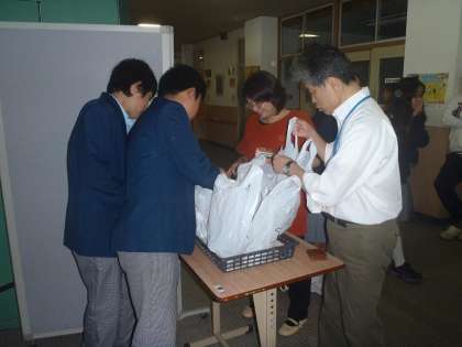 畑で作ったサツマイモを,販売の実習もかねて職員室前で先生方に買って貰ってます。大きいのも小さいのも混ぜて,250g,500g,1kg単位での販売です。