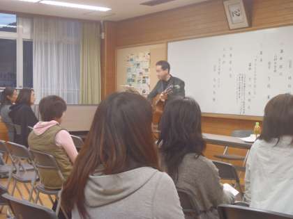 12日,百々小学校のふれあいルームを会場に,地域家庭教育学級が開催されました。講演は「ふるかわ家族カウンセリング研究所所長」で京都市や門真市でもスクールーカウンセラーを務められている古川秀明氏にお願いしました。古川先生は自ら「シンガーソングカウンセラー」と言われますが,この日も歌と講演をしていただきました。講演は「子どもとどう向き合うか」というテーマで,今日の世相も反映しながら,なるほどなと心に残るものでした。歌は何曲もお持ちですが,「がんばれお母さん」などを歌って下さいました。