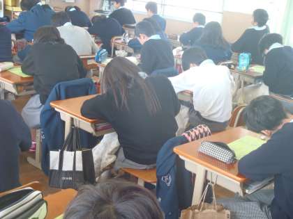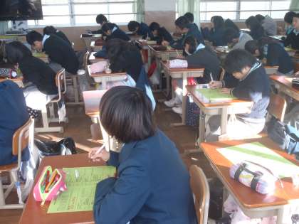 昨日からテスト1週間前になりました。1年生のクラスでは,先生から各教科のポイントを聞き,真剣にメモを取ってます。