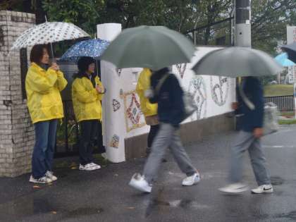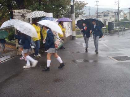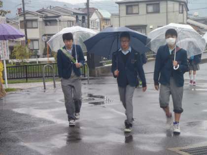 今朝はPTAのあいさつ運動の日でした。毎月第3金曜に校門前と安祥寺川の橋のところで地域委員さんを中心に,「おはようございます」と声掛けをしていただいてます。今朝は生憎の雨ですが、生徒たちは元気に登校してくれました。
