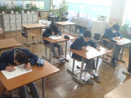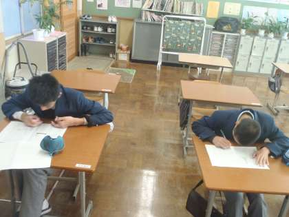 8組では国語のテストでした。プリントの文章を読み,問いに答えます。みんなそれぞれの課題に頑張って取り組んでいます。