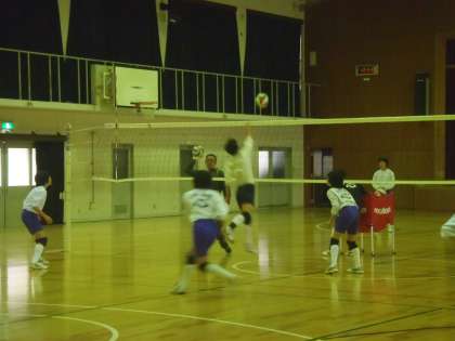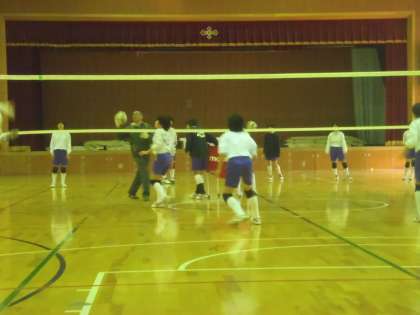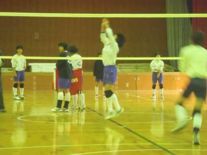 午前中の体育館では女子バレー部が練習。新人戦、テストが終わり,来月末から始まる府下大会の予選に向けて練習再開です。3年生も応援に来ています。