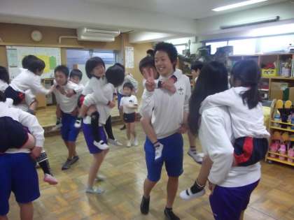 今日から家庭科のふれあい活動が始まります。今年もももの木保育園と東山幼稚園のご好意で活動場所を提供していただいてます。今日は3時間目に3年1組がももの木保育園で活動させていただきました。