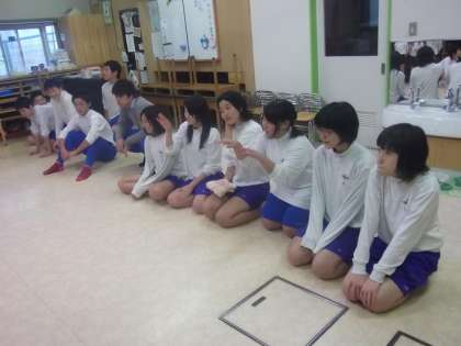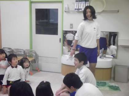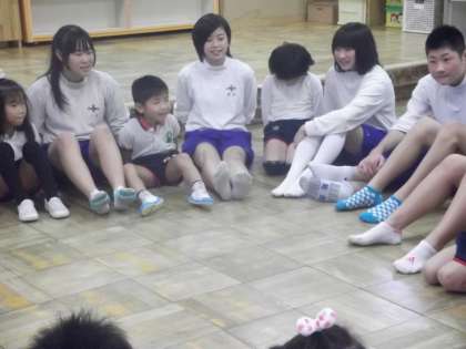 中学生も童心に返って,園児たちと楽しく和やかに遊んでくれました。最後に御礼を言って活動の終了です。ももの木保育園には,あと3クラスがお世話になりますが,よろしくお願いします。