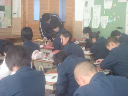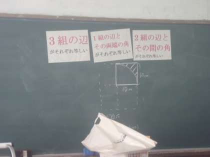 2年生の数学は三角形の合同の証明のところです。図形の問題は論理的な思考が求められますが前に出てしっかり説明も出来ていました。
