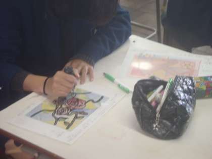 2組は美術の時間。早い人は次の「ステンドグラス」に取りかかっているようです。
