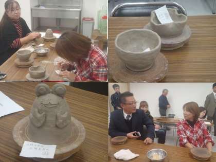 講師の谷口良孝氏より創り方を教わり,粘土をこねて手捻りで作品を創りました。約1ヶ月後に焼き上がって手元に届きます。今からとても楽しみです。