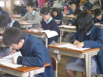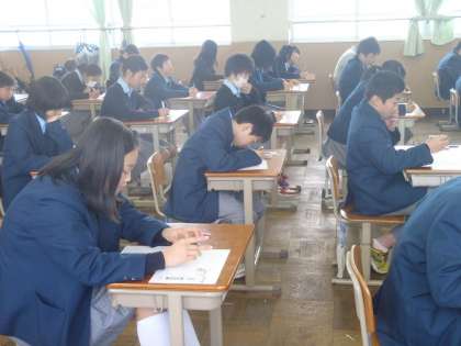 これまでの学習を振り返り,自分がどこまで到達しているかを確認するテストです。予習シートにはしっかり取り組めたでしょうか?今年から公立高校の入学選抜方式が変わり,3年生では,生徒一人一人が自分の位置(実力)を知る意味で「学習確認プログラム」の結果を参考にしています。実力は急につくものではありません。1年生の時から計画的に取り組みましょう。