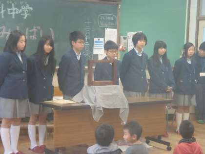 12日(木)図書委員会の2年生は百々小学校に読み聞かせの活動に行きました。放課後の学童ボランティアの時間に行う予定だったので,早めに到着してまずは練習です。子どもたちが集まってきて,全員で挨拶です。