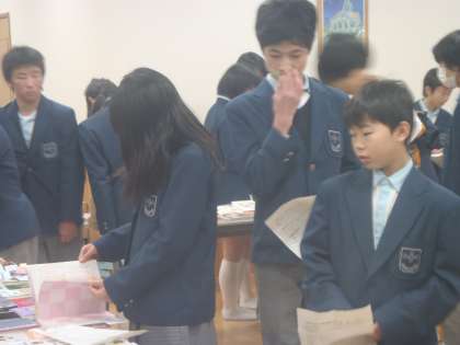三者懇談の合間に時間が空いた先生方も来て付箋を貼っておられました。子どもたちの間では文学や歴史、哲学分野の本より,図鑑,スポーツ,科学,ハウツーものなどに人気があるようでした。