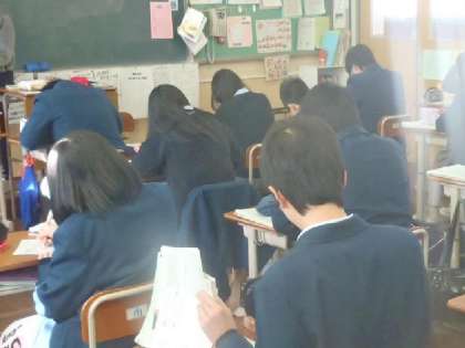 家庭科は3期最初の授業がテスト前最後の授業。ということで、今日はプリントを中心に保育実習の子どもの遊びのまとめとテスト勉強の「追い込み」です。