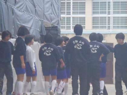今日は体育館が使えない日なので,堤防走と中庭でトレーニングです。