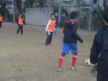 サッカー部は19日(日)に松尾中学で,U−14の大会があり,それに向けて練習に励んでいます。3年生も何人か来て後輩の練習相手になってくれています。