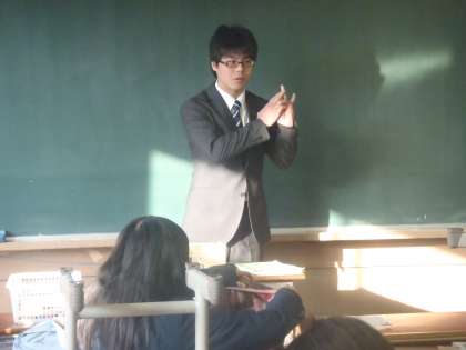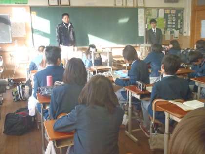 今日から1月31日までの毎週金曜日,田島亮先生が研修で本校に来られます。先生は現在,洛陽工業高校で数学を教えておられますが,来年度から中学校に変わられるので,事前研修でお見えになります。本校では2年生担当の笠島先生に付いて研修をしていただきますのでよろしくお願いします。