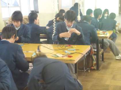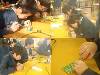 3つ目ぐらいから慣れて作業も早くなります。早くできた人は裏側に取りかかりますが,ハンダが流れすぎて,回路がショートしないように注意が必要です。